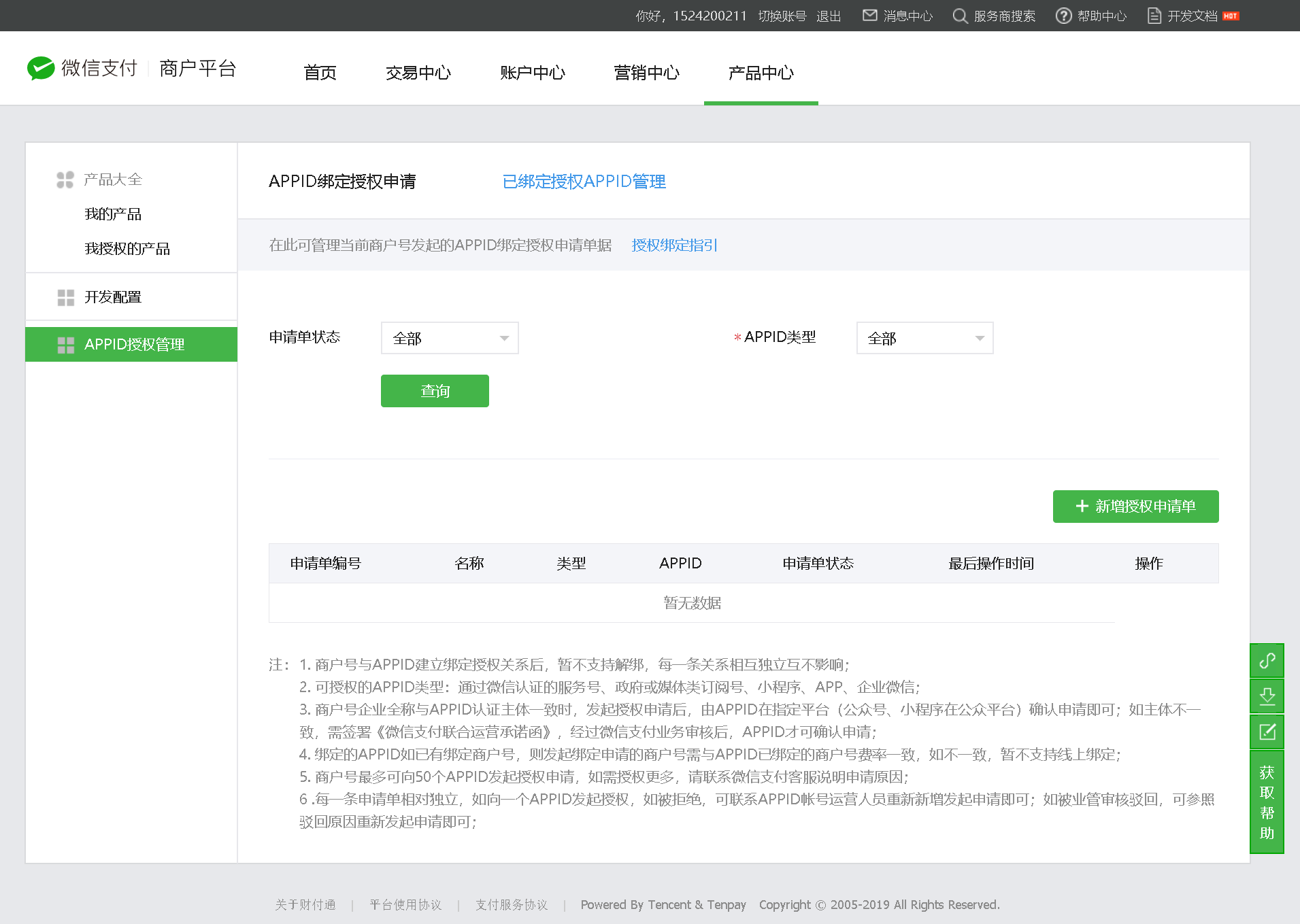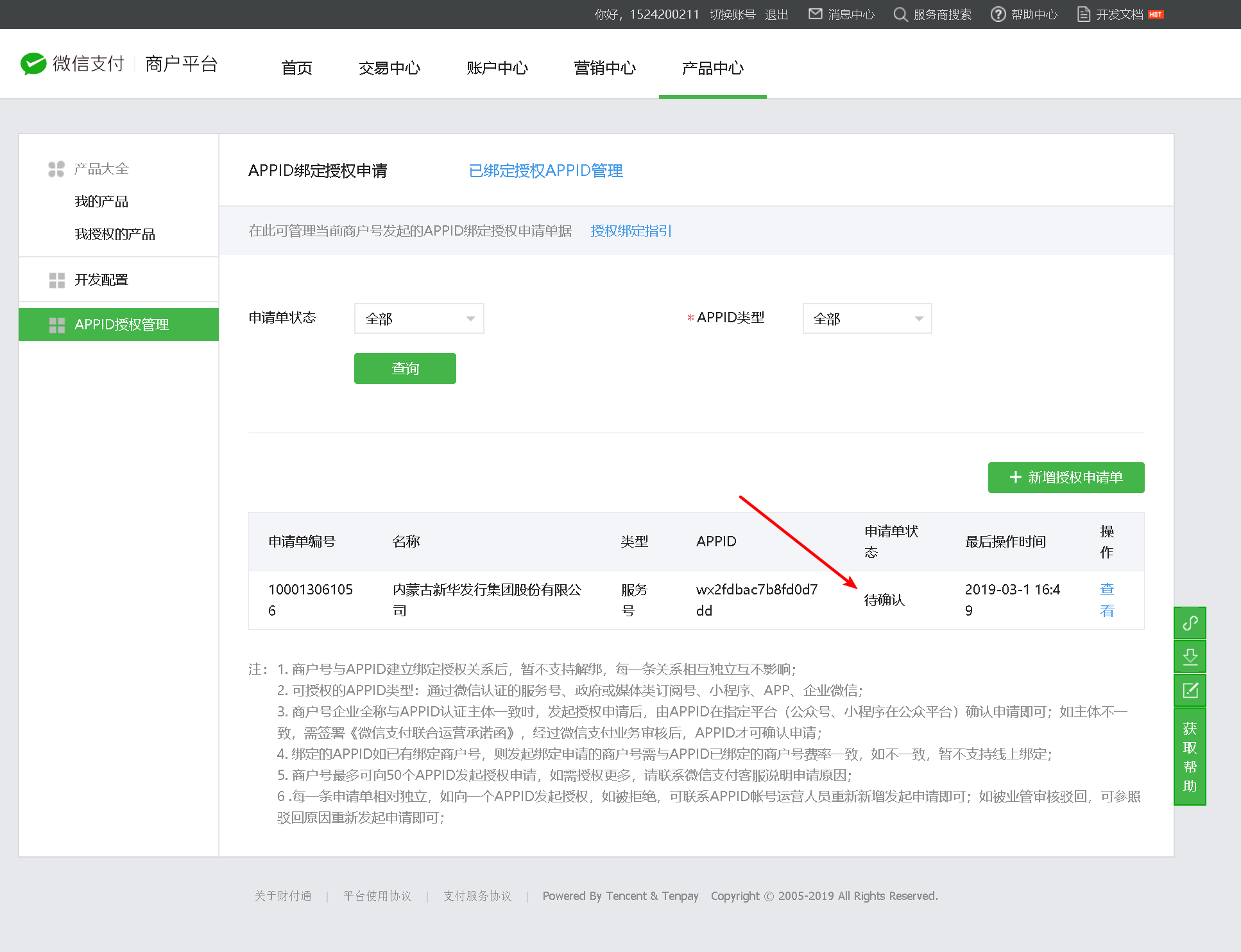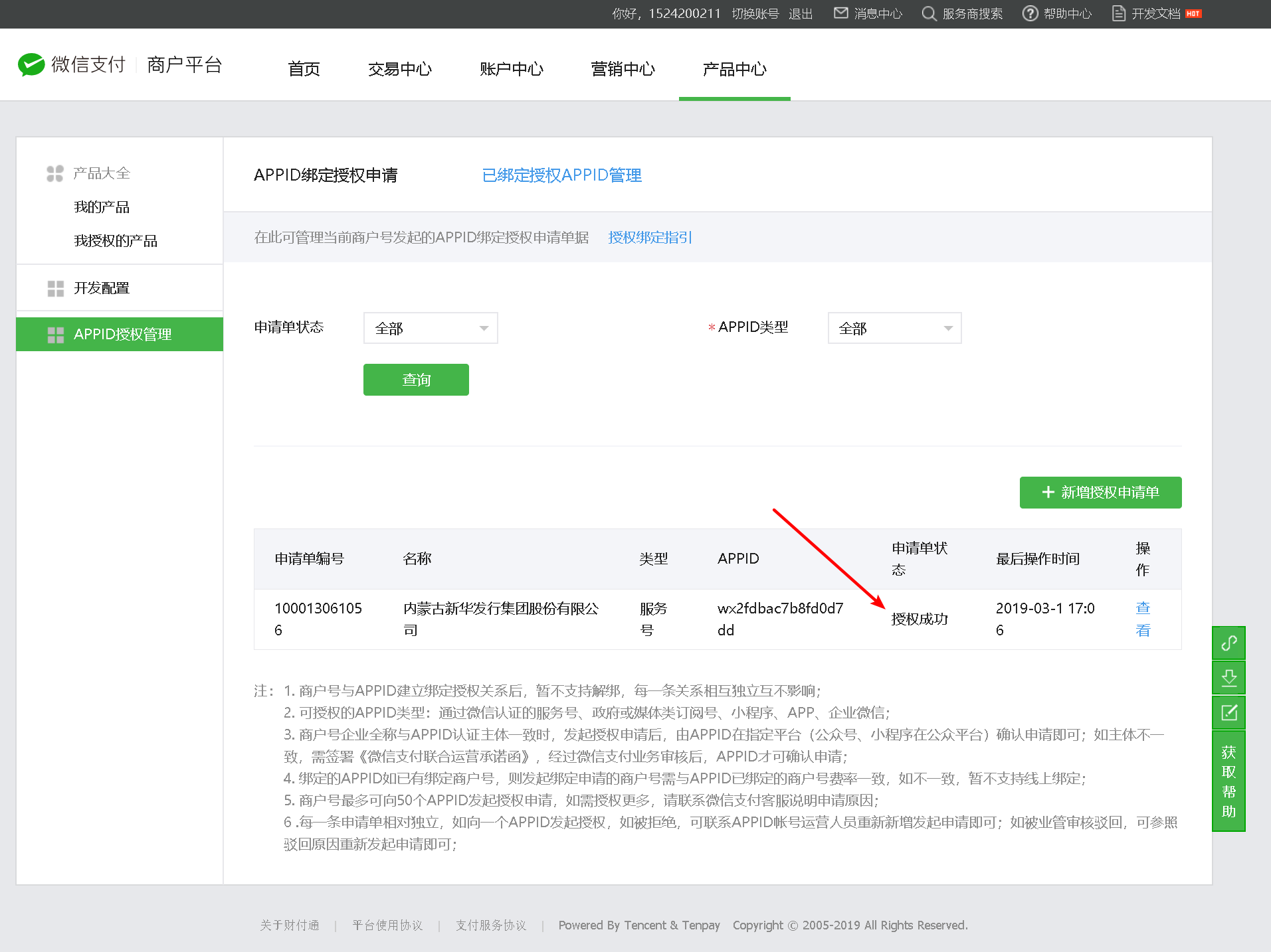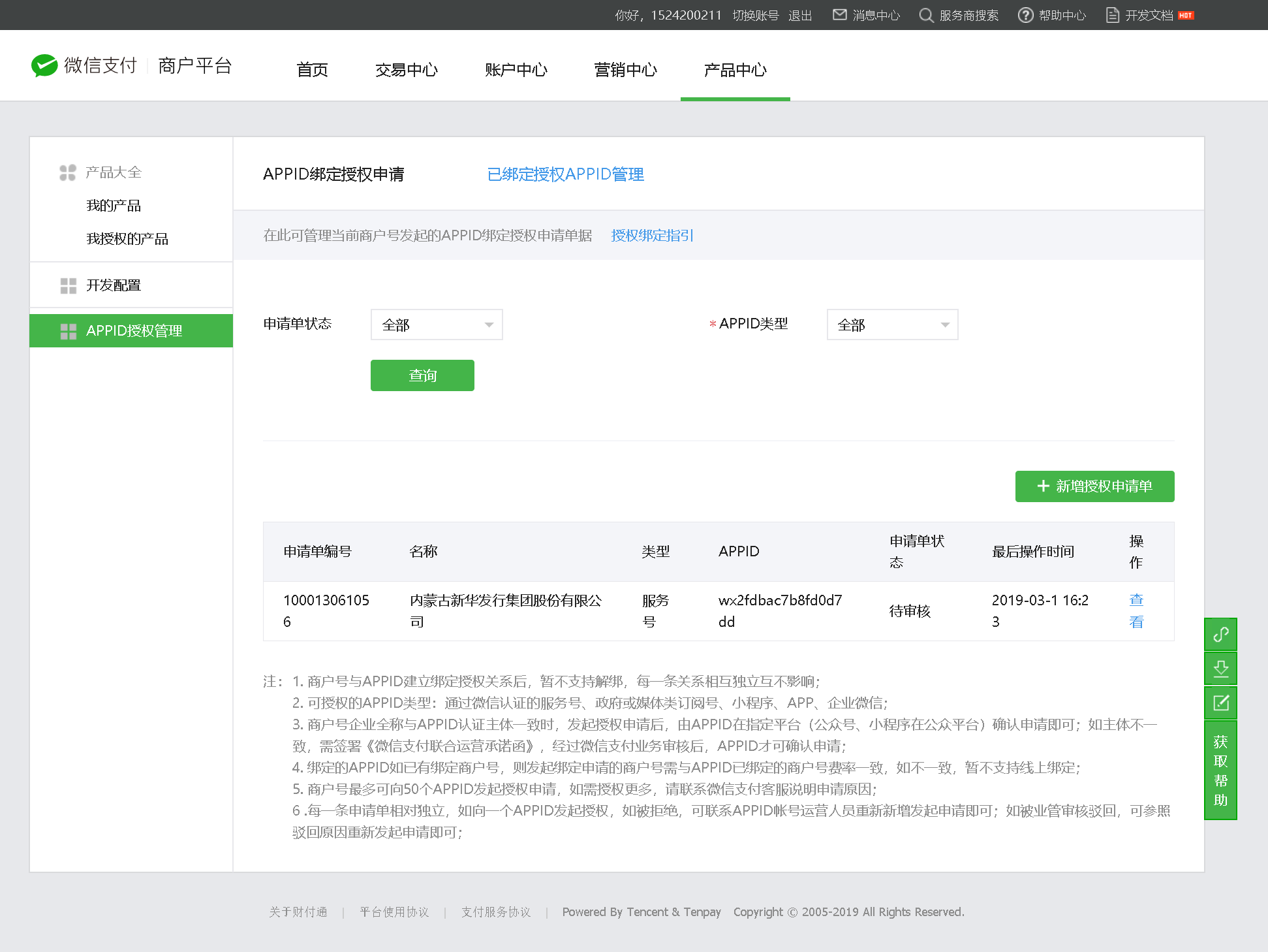 4、支付商户号业务范围与公众号业务范围需一致(例如:公众号业务范围是餐饮,则申请联合运营的商户号业务范围也必须为餐饮)