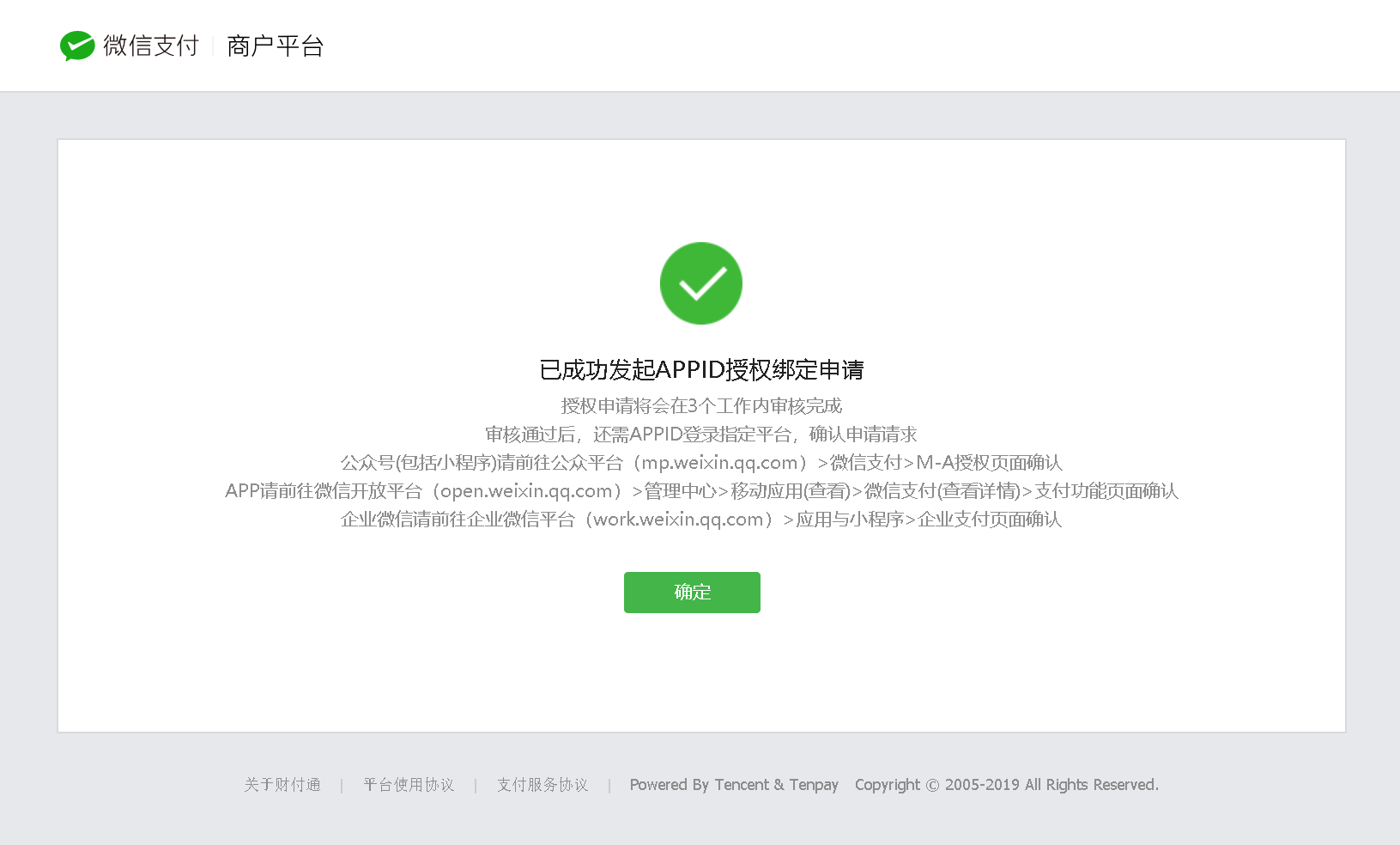 3、已有商户号的商家必须已走完微信支付流程,即已完成账号验证和协议签约