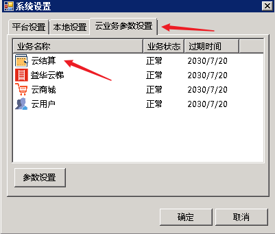 切换至“云业务参数设置”