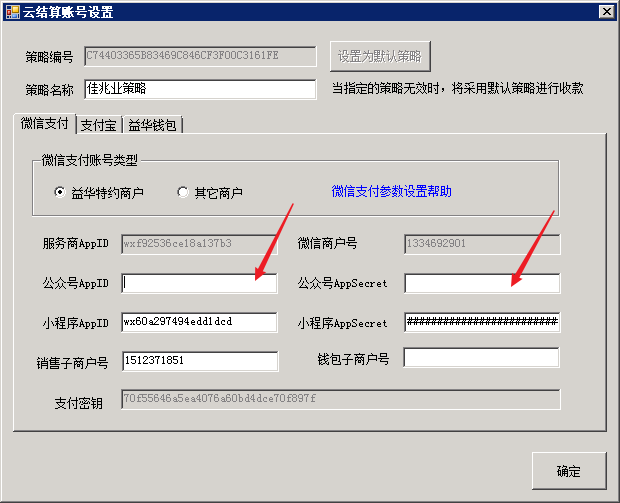 按微信提示进行操作,即可获得这两个参数,然后复制到云梯中