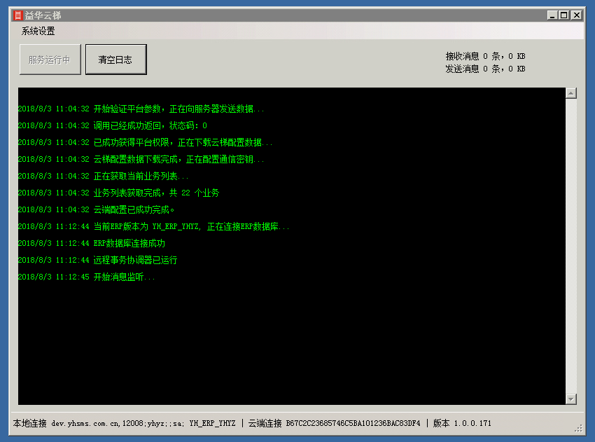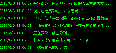云端连和和本地ERP连接都设置完成后,云梯会自动启动服务,进入工作状态。并且以后会自动启动服务,不需要再次进行设置。