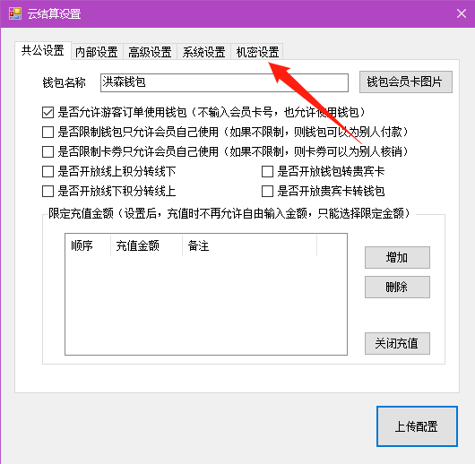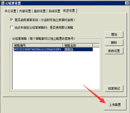 在云结算配置窗体中,点击确定,回到上一窗体,然后点击“上传配置”,稍后会提示“配置上传成功!”
