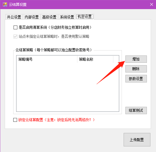 5、点击云结算策略右边的“增加”按钮,开始录入账套