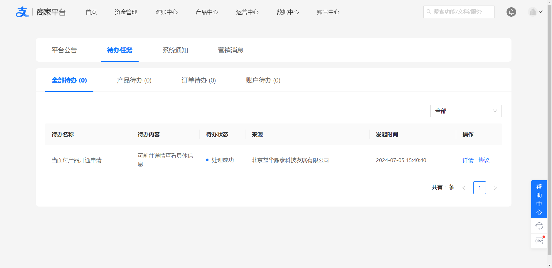 注意:此应用无需人工建立,当面付签约完成后就自动显示