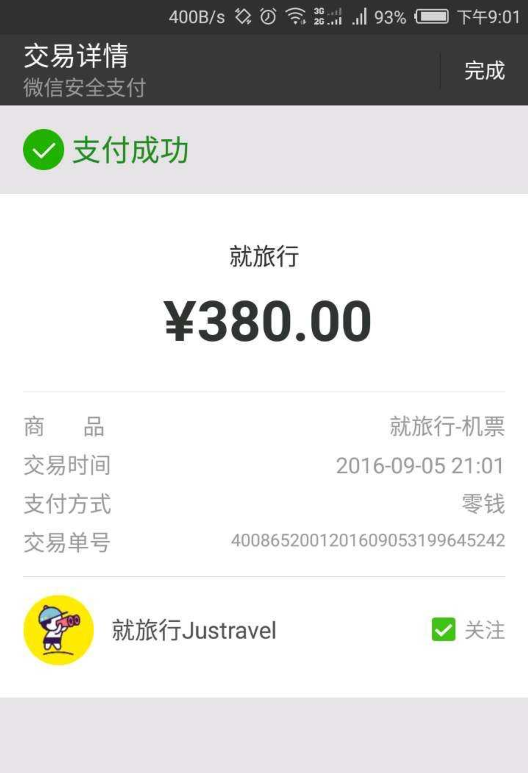 (4)如果已经关注过了,支付后就不会出现推荐关注框