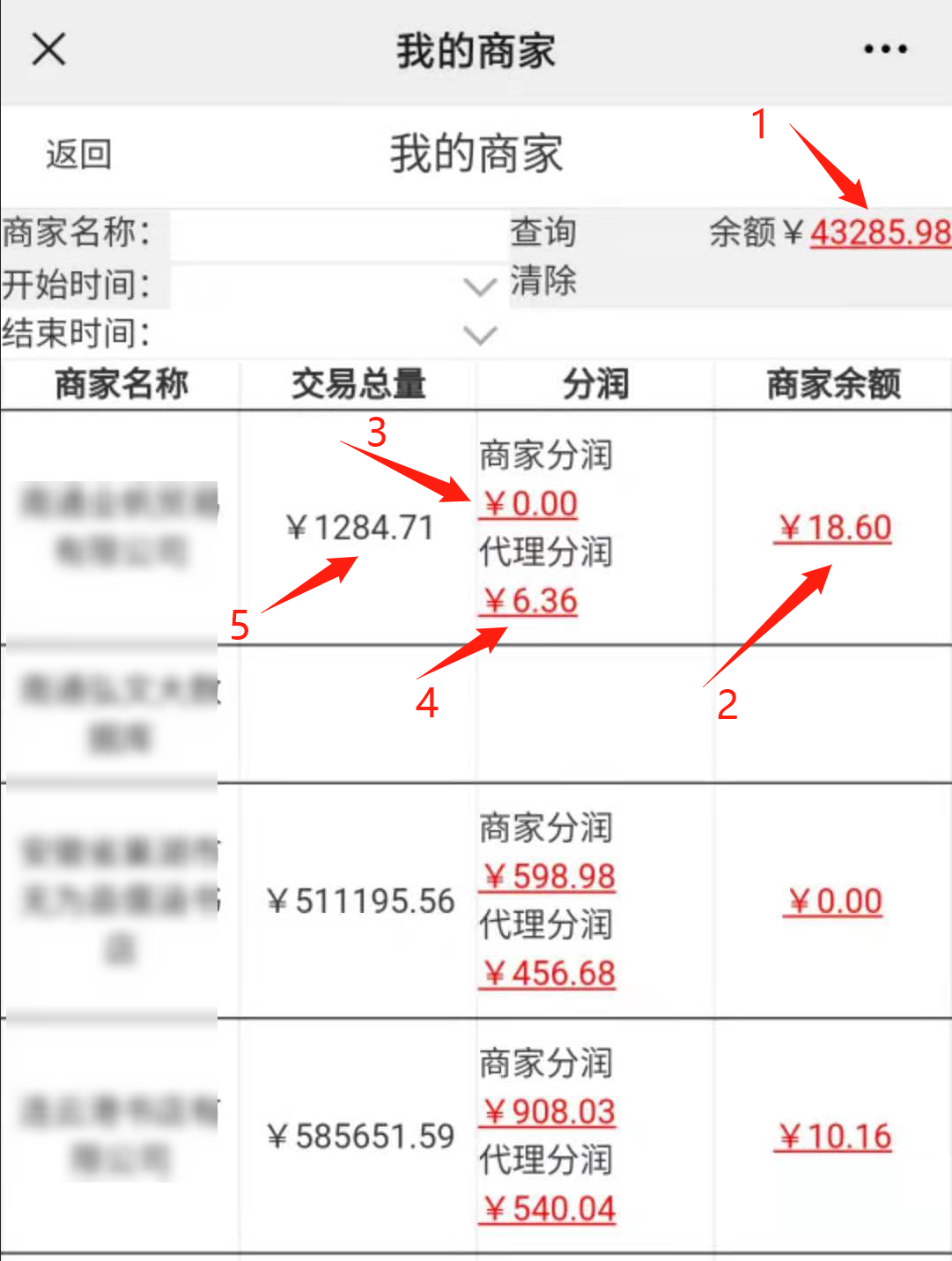 1、余额:此金额是大区分润总金额,也就是可以提现的总金额。金额为所有客户的分润余额累计。(例如:当前有10家客户,每家客户的云结算交易金额为1000元,