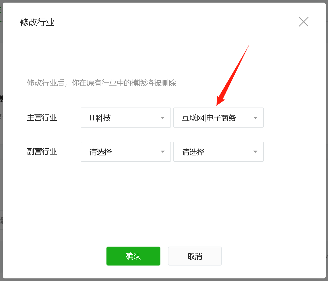 主营行业选择“IT科技”“互联网|电子商务”,副营行业任意选择一个
