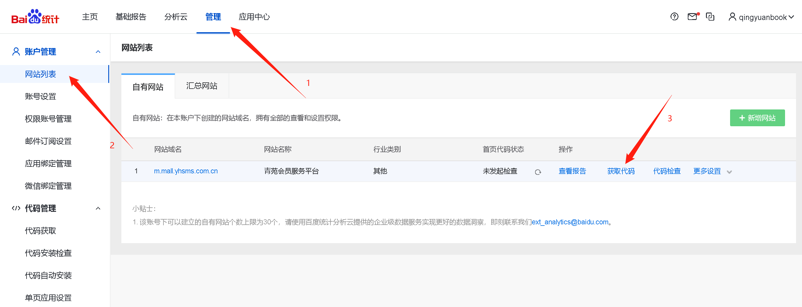 打开云梯–>系统设置–>益华云平台维护–>平台设置(找到对应客户)–>选中“云监控”–>参数设置,将百度统计号粘贴进去,然后点击“上传配置”,全部设置即可完成。