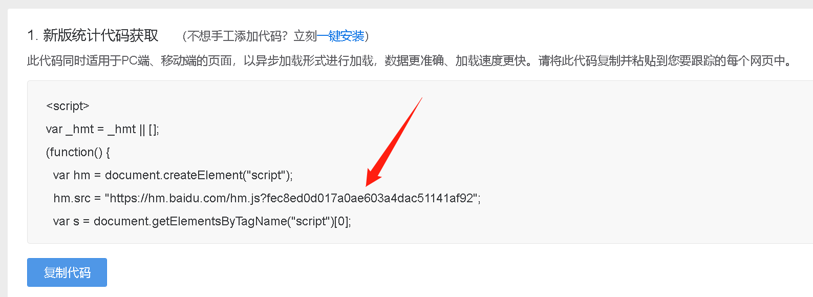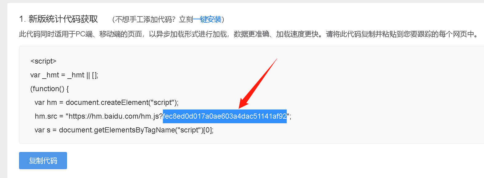 在百度链接后面,问号之后的32位字符串即为统计接入号。