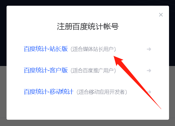 2、点击右上角“注册”,选择“站长版”,如下图: