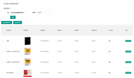 3、选择文轩的“四川文轩出版物协同交易平台”站点,然后点击确定,列出可供采购的品种