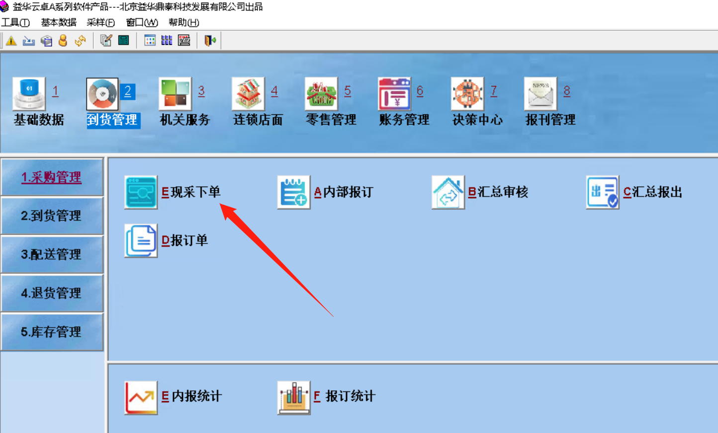 1、进入ERP系统,到货管理–>采购管理–>现采下单