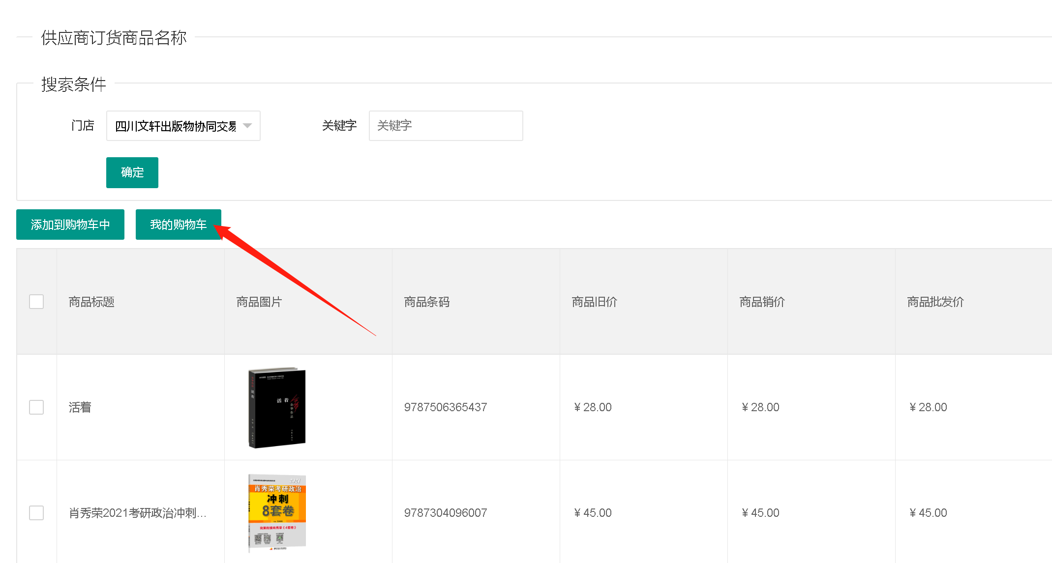 2、在供应商列表中,选择“四川文轩”