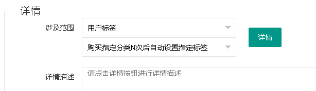 选择“用户标签”,“购买指定分类N次后自动设置指定标签”