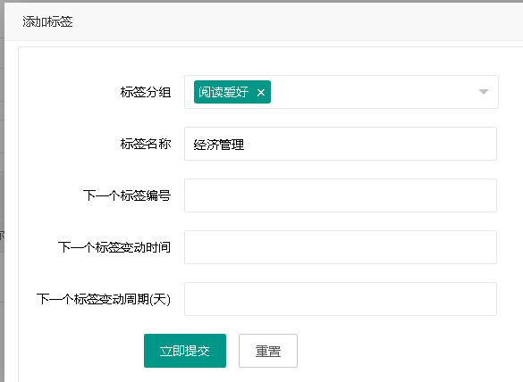 标签名称:录入标签值(例如“经济管理”)。